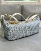 Blue Dior Oblique Chambray with Raffia Effect and Light Biscuit Smooth Calfskin