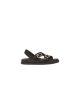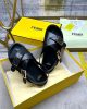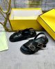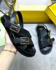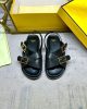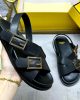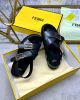 Triple-band flat cross-over slides with FF Baguette decorative buckles. Made of black leather. Elastic detail on the back strap. Gold-finish metalware.