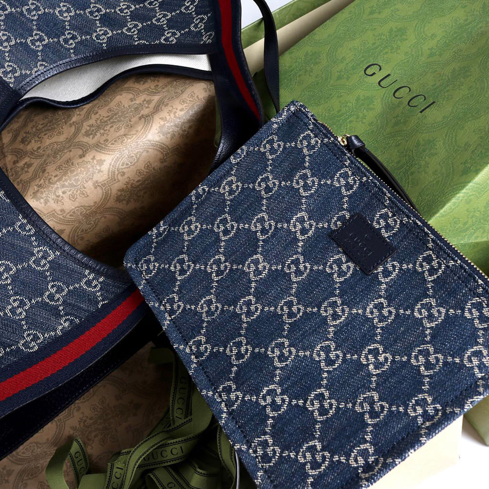 Blue and white GG denim